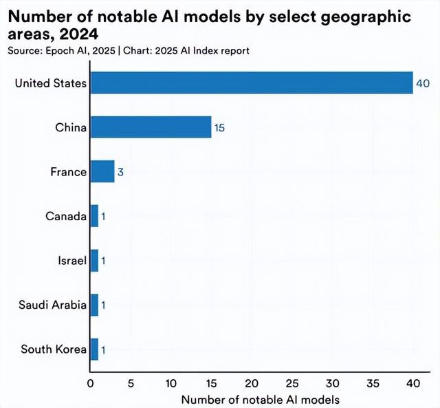 报告称,虽然在2024年,美国机构以40个知名模型领先,中国只有15个,但在性能上,两国的差距已经微乎其微。
