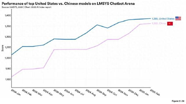 要知道,2023年这一数字还是20%,短短两年间,中国AI模型性能的提升速度简直可以用“飞速”来形容。这不仅意味着中国在AI领域的技术实力正在快速提升,更预示着未来全球AI竞争格局将发生重大变化。